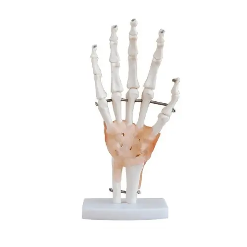 Fabricado con materiales resistentes y de alta calidad, este modelo ofrece durabilidad y un acabado realista. Algunos diseños incluyen partes móviles que simulan los movimientos naturales de la mano, lo que lo convierte en una herramienta ideal para entornos educativos y clínicos. Es ampliamente utilizado por profesionales de la salud, estudiantes y docentes para explicar lesiones, patologías y funciones del sistema musculoesquelético.